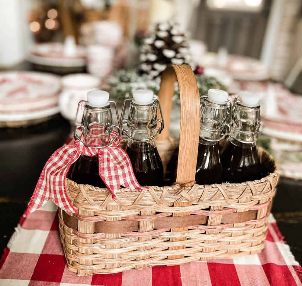 Mix thoroughly then pour into bottles. It is ready to serve over ice. Enjoy.