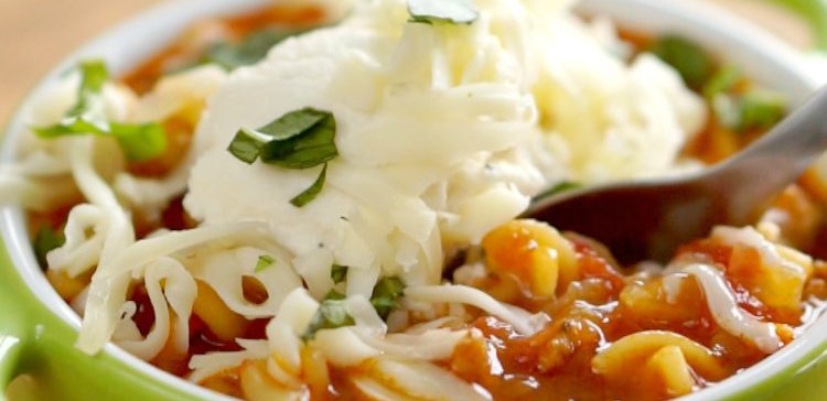 Once the pasta is al dente, spoon a little of the ricotta mixture in each serving bowl, then ladle the soup over. Sprinkle with chopped basil and the shredded mozzarella.